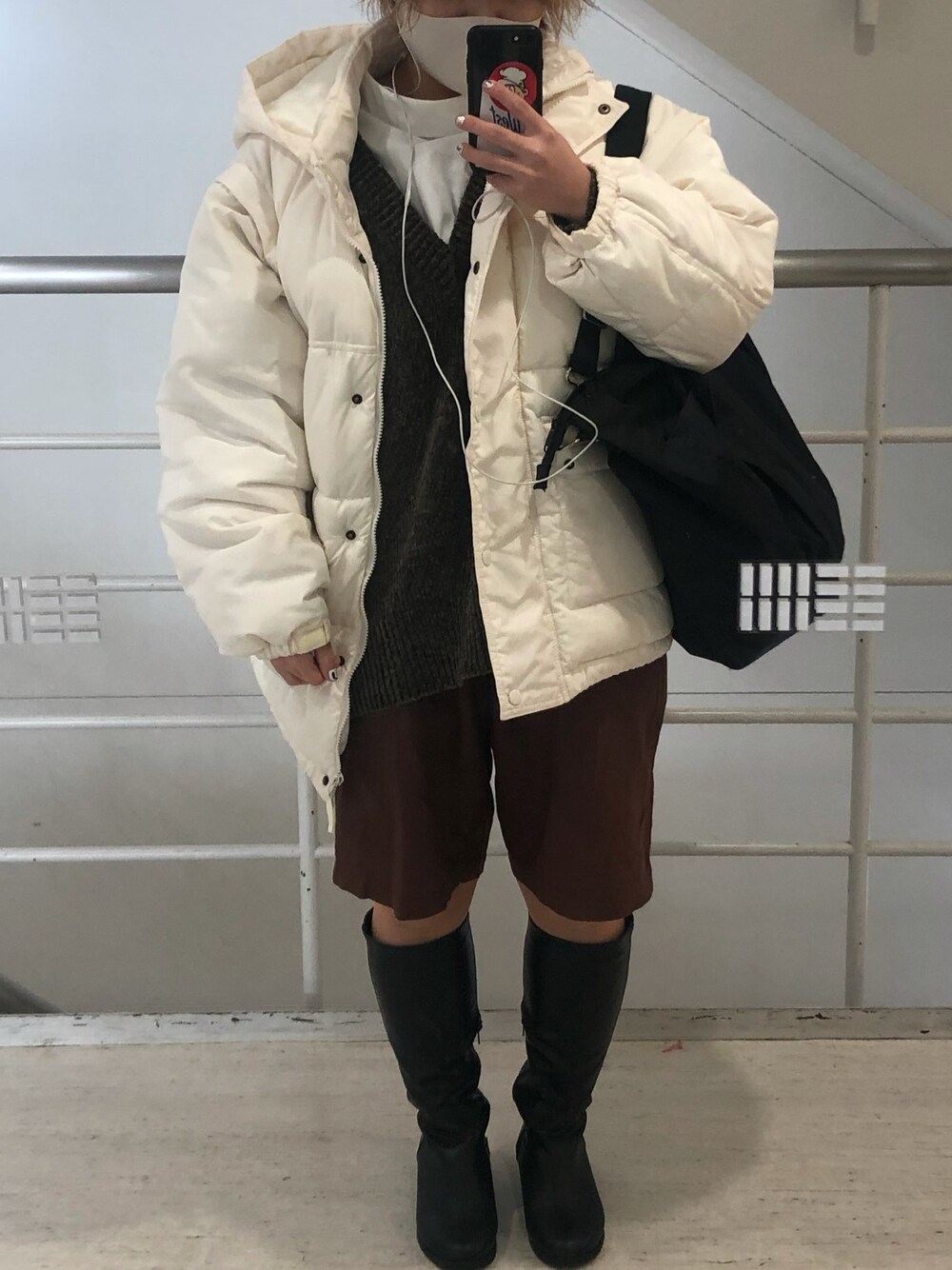 着用コーデ:43件nikoandのパンツはusedで¥500 urban reserchのニットはセールで¥1990 w closetのダウンもセールで¥1990 💞💞💞