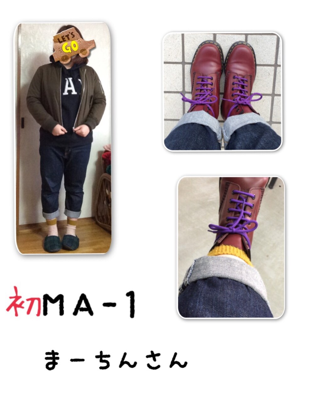 今日は初MA-1でした! 着こなし方がわからなかったので、無難にプルオーバーパーカーと合わせてみました( ¨̮ ) これから色々試していきたいと思います٩(ˊᗜˋ*)و まーちんさんからのチラ見せ靴下にも挑戦(*´艸`*)
