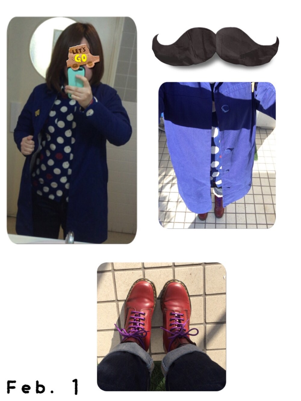 今日はパジャマのような水玉シャツでブルーコーデしてみました(•ө•) 水玉の赤とマーチンをアクセントカラーに(´,,•ω•,,)♡