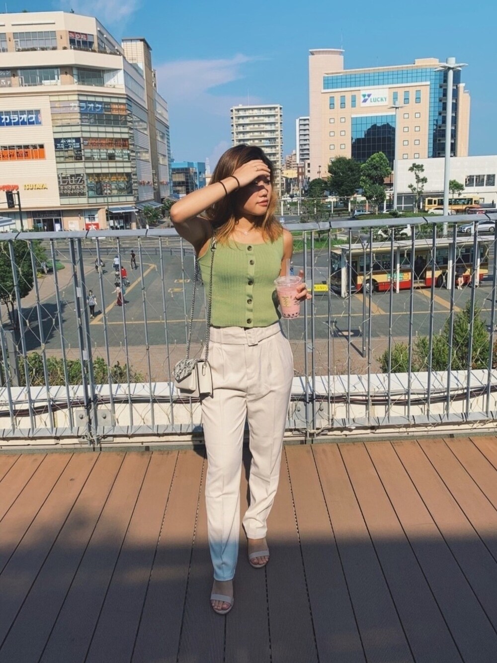 miraimasakiのタンクトップ「前後2wayスクエアネックリブニットタンクトップ」を使ったコーディネート