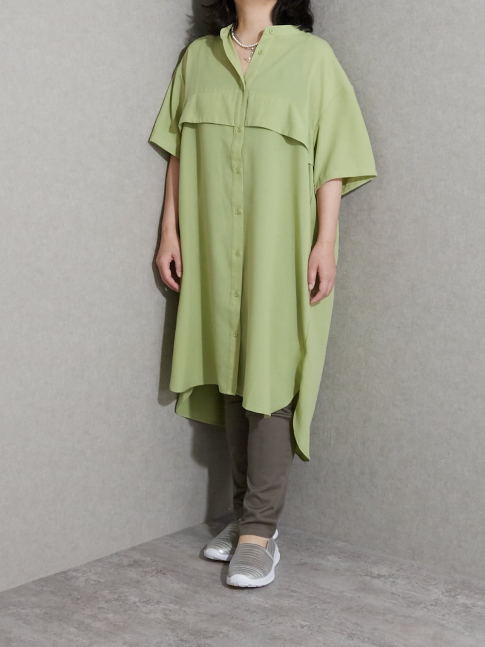 Miranda(nissen本店)のワンピース「お手入れ簡単!麻混涼やかドライエックスバンドカラーシャツワンピース(吸汗速乾・イージーケア・毛玉防止・通気性)」を使ったコーディネート