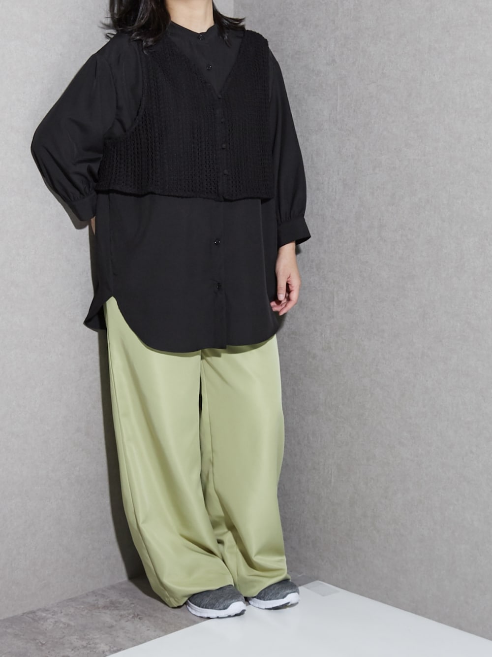Miranda(nissen本店)のシャツ/ブラウス「【2点セット】バンドカラーシャツ+レースビスチェ [Soiunique]」を使ったコーディネート
