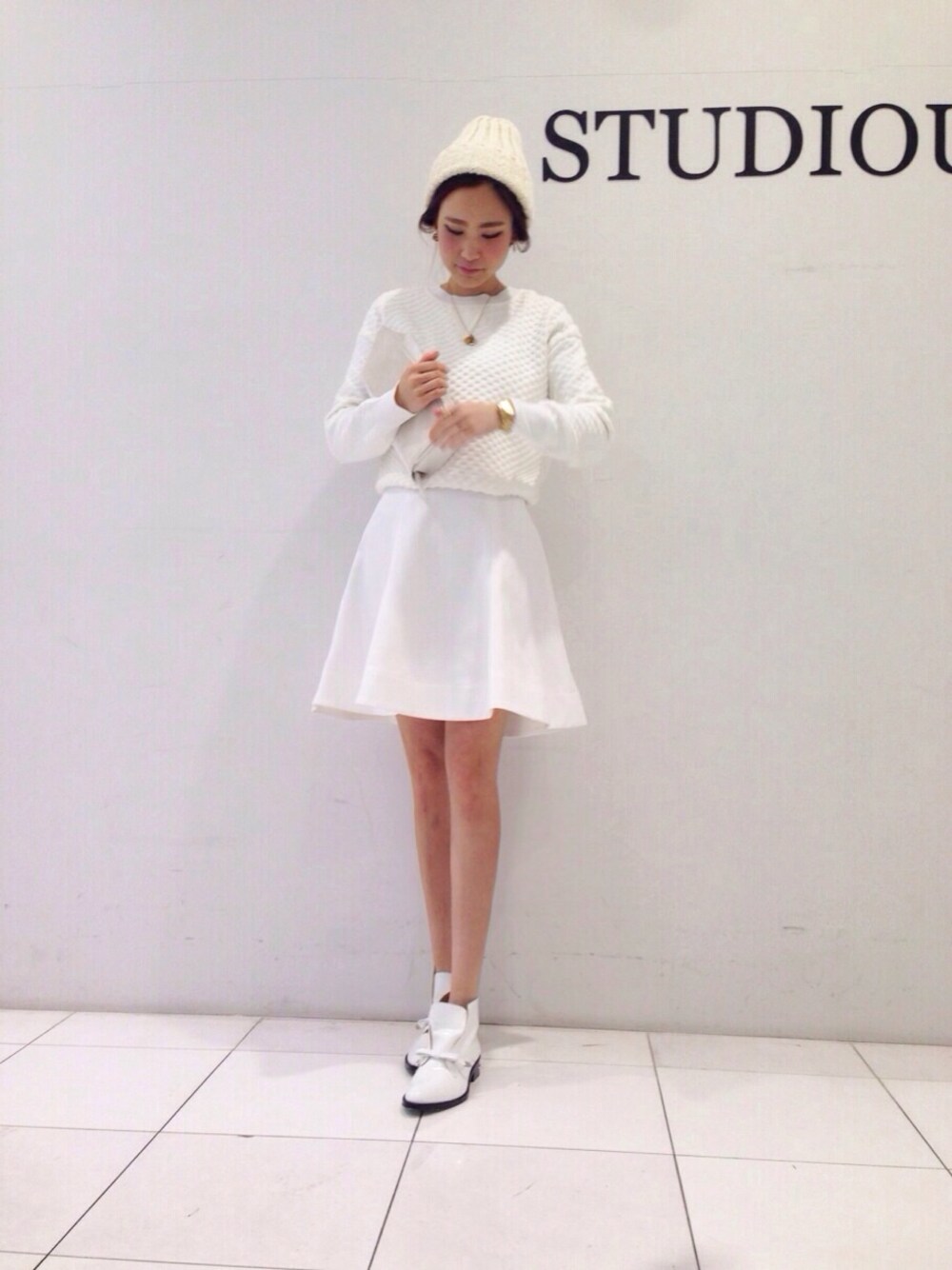 MIRAN.KIMのニット/セーター「BUSSOLE ダイヤ柄バイカラーニットPO」を使ったコーディネート