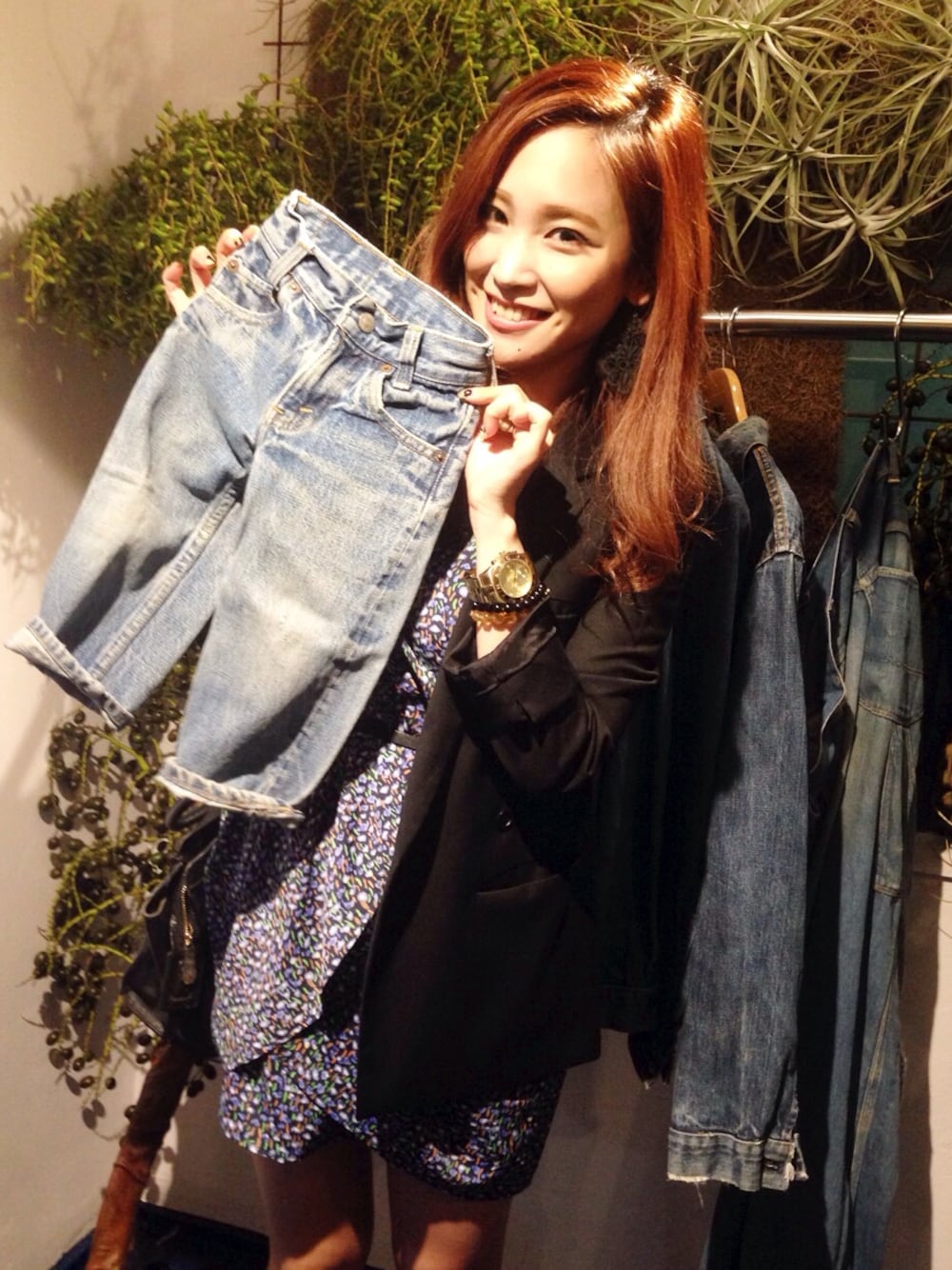 変わったドット柄のミニワンピに 大人目のジャケットでon&off。
