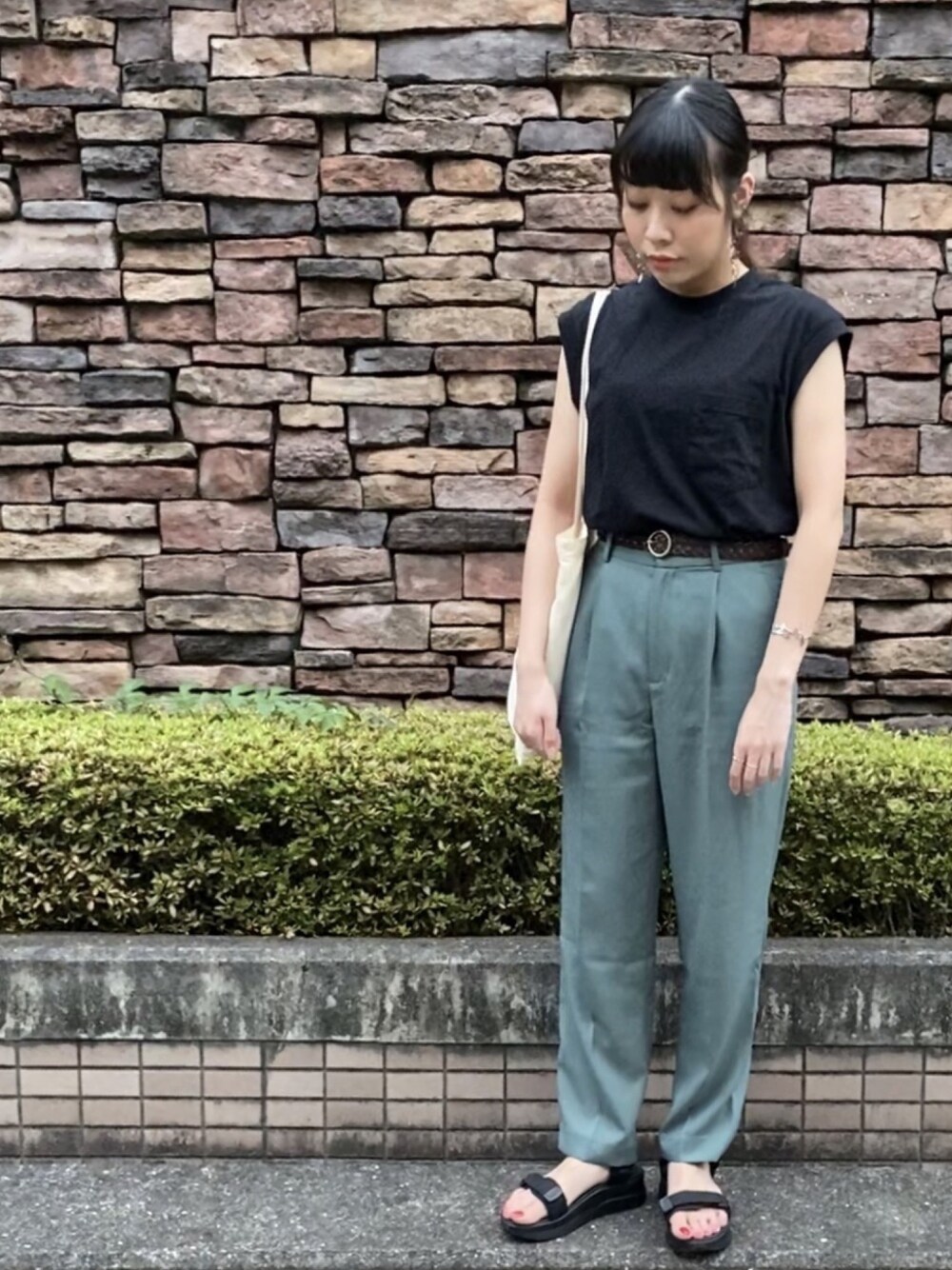 ご覧頂きありがとうございます🌼 スピさん、maiさん フォルダイン🗂ありがとうございます🥺✨ とても嬉しいです😭💗 またまたご無沙汰しておりました、、、 今回はついこの間のリアル出勤コーデです。 この日は棚卸しの日だったので、 動きやすさだけを追求しました。笑 シンプルになってしまったので アクセで遊んでます〜😂 (アクセについては後程、、、) ブラック×グリーンの 大人っぽカラーにしてみました🍃 トップスのゆったり感がかなりお気に入り✨ パンツも動きやすさバッチリな上、 すっきり見えて最高です☺️ そしてアクセですが、 最近ネットで購入してしまった、 私のツボに入ったデザインの ピアス&バングル🥺 どちらも同じデザインです💗 皆さんこちら何に見えますか、、、?? よーく見てみて下さいね🤔💭 ほら!見えてきたはず!!! (答えすぐ下にあるけど) ピアスは片耳用だけど2つ購入して 付けた時正面から見て、 左右対称になるように少し改造しました✨ お店につけて行った時の皆さんの リアクションが面白くて、楽しくて😂 皆さんかなり良いリアクションを して下さります。笑 面白可愛いアクセ探しハマりそうです😏✨