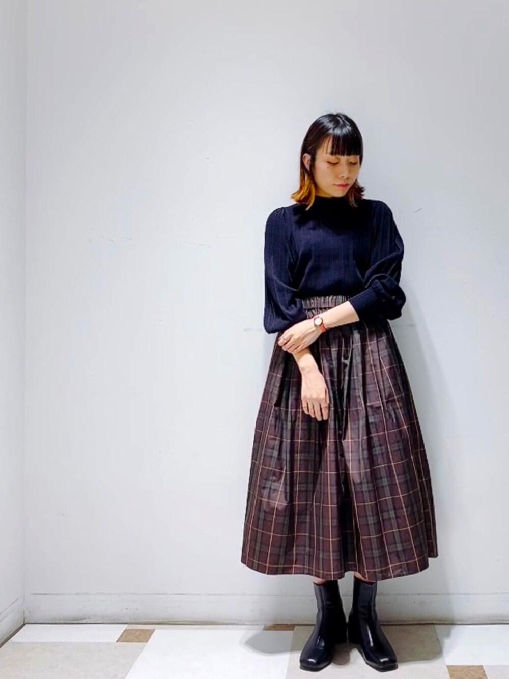ano.のスカート「タフタチェックスカート」を使ったコーディネート