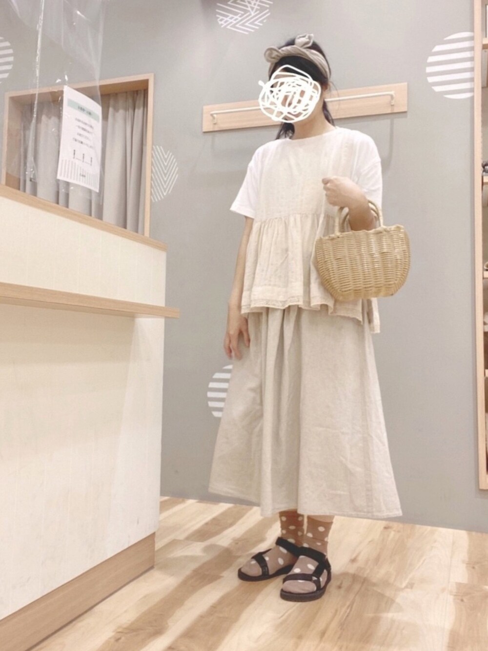 344.☺︎のスカート「リネン混前後着ギャザースカート」を使ったコーディネート