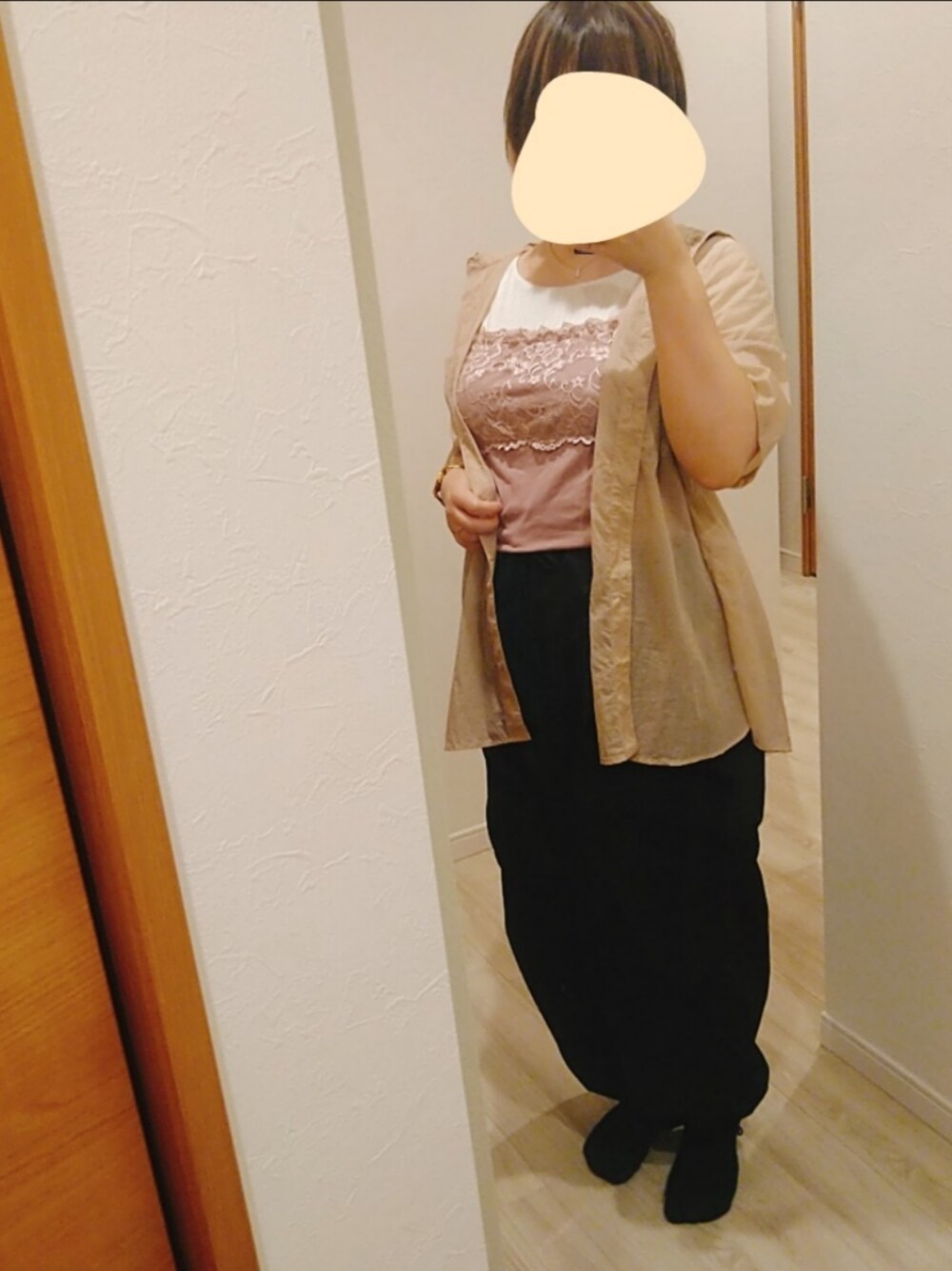 本日のコーデ☀ カジュアルな黒のワイドカーゴパンツを ガーリーに着たいなぁとトップスはピンクで。 クラシカルエルフのJavaコラボのワイドカーゴパンツの生地感すごい好き…。 シワになりにくいしゴミも付きにくい生地なんだけど、シャカシャカし過ぎないところが◎
