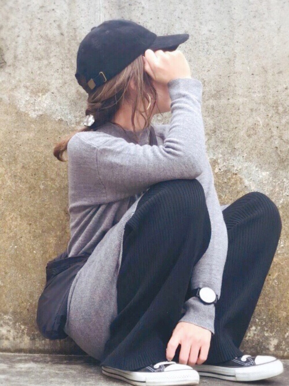 ウォッチありがとうございます😊 昨日に引き続きgrey×black。 くるりんぱ編みおろししてみたけどぐちゃぐちゃ😂笑