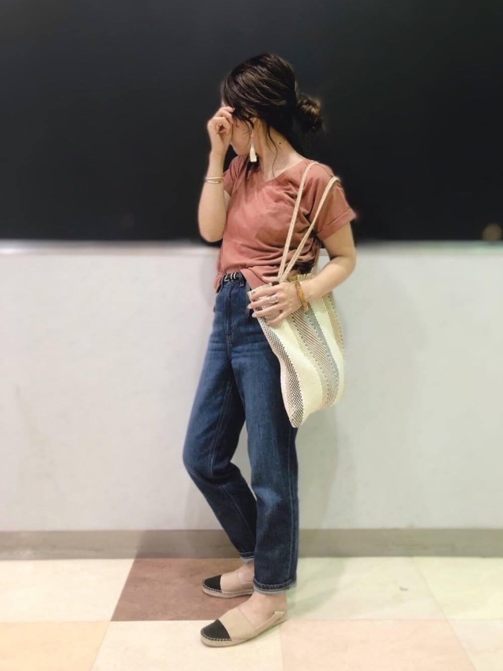 ウォッチありがとうございます😊 タイ旅行っぽいコーデ🇹🇭笑 言った事ないのにすごい勝手な主観。笑 このトート低身長の私でも持ちやすくてお気に入りー♡