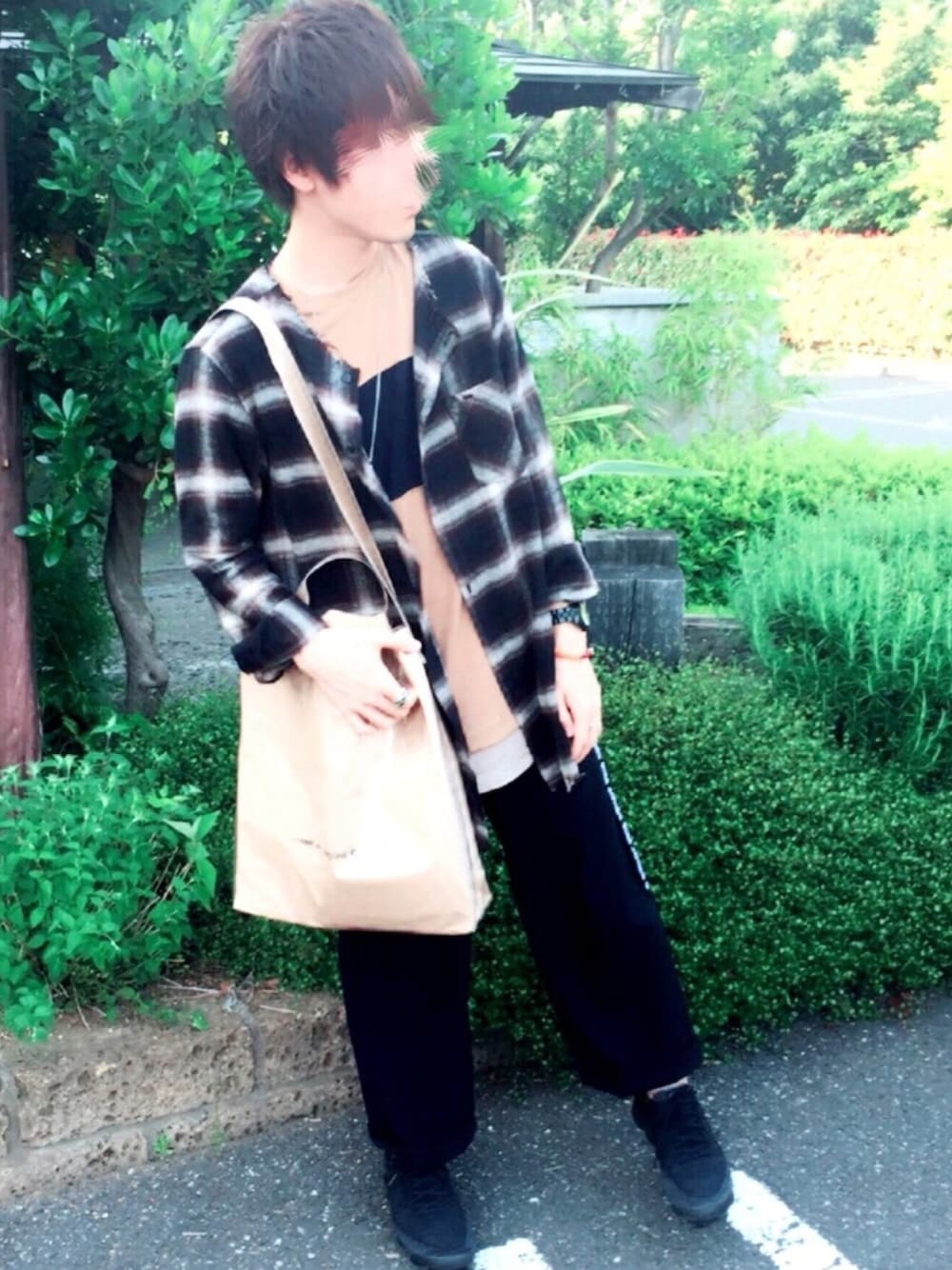 いつも見ていただきありがとうございます😊 今日はノーカラーのチェックシャツを使ったスタイリングです♪ インナーはベージュのカットソーにベージュのタンクでレイヤード パンツはやや細めのワイドパンツでスッキリと合わせてみました♪♪