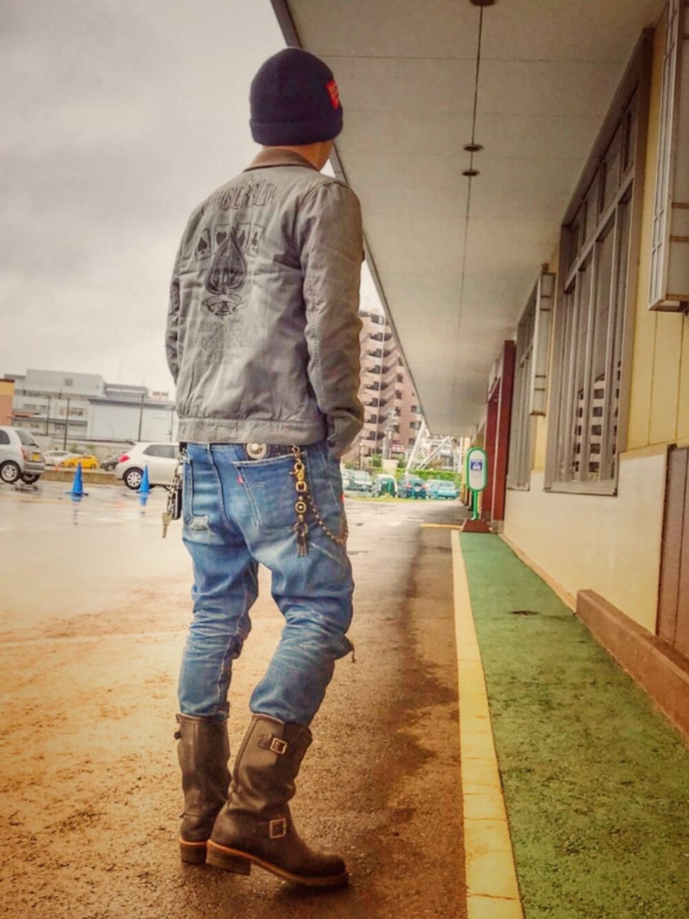 皆さん、いつもありがとうございます😁 KOHです😎✌️ 雨…スゴいっす💧💧 スーパー銭湯♨️行ったらメッチャ混んでました…考える事は皆同じ… 台風🍃🌀☔の中、雨に打たれて入る風呂♨️もなかなか良いモノです😁 wacko mariaのミリタリージャケット😆 背中のペイントがクール😎✌️でお気に入り💕 同じく、wacko mariaのニットキャップ💕 それでは、また✋