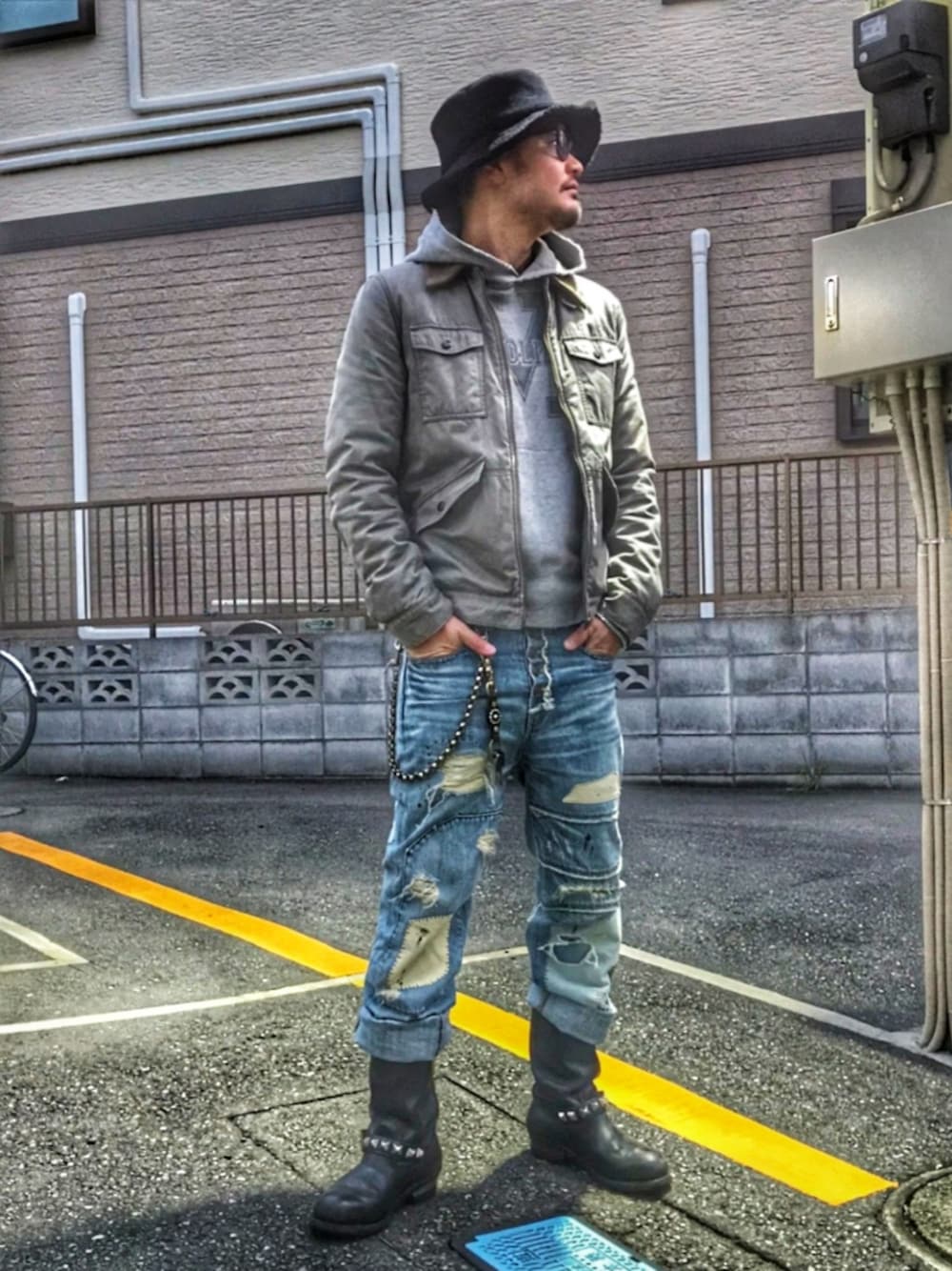 ども、KOHです😁✌️ WACKO MARIAのミリタリージャケット にTMTのパーカー…ルーズなダメージデ ニムにRED WINGのエンジニアブーツ… ずっと、こんなスタイル… このエンジニア…どのくらい履いてるか な…ソールは2度交換してるし…10年位は 履いてるかのかな⁉️ それ、考えると…RED WINGってプチプラ じゃね⁉️ それでは、また✋