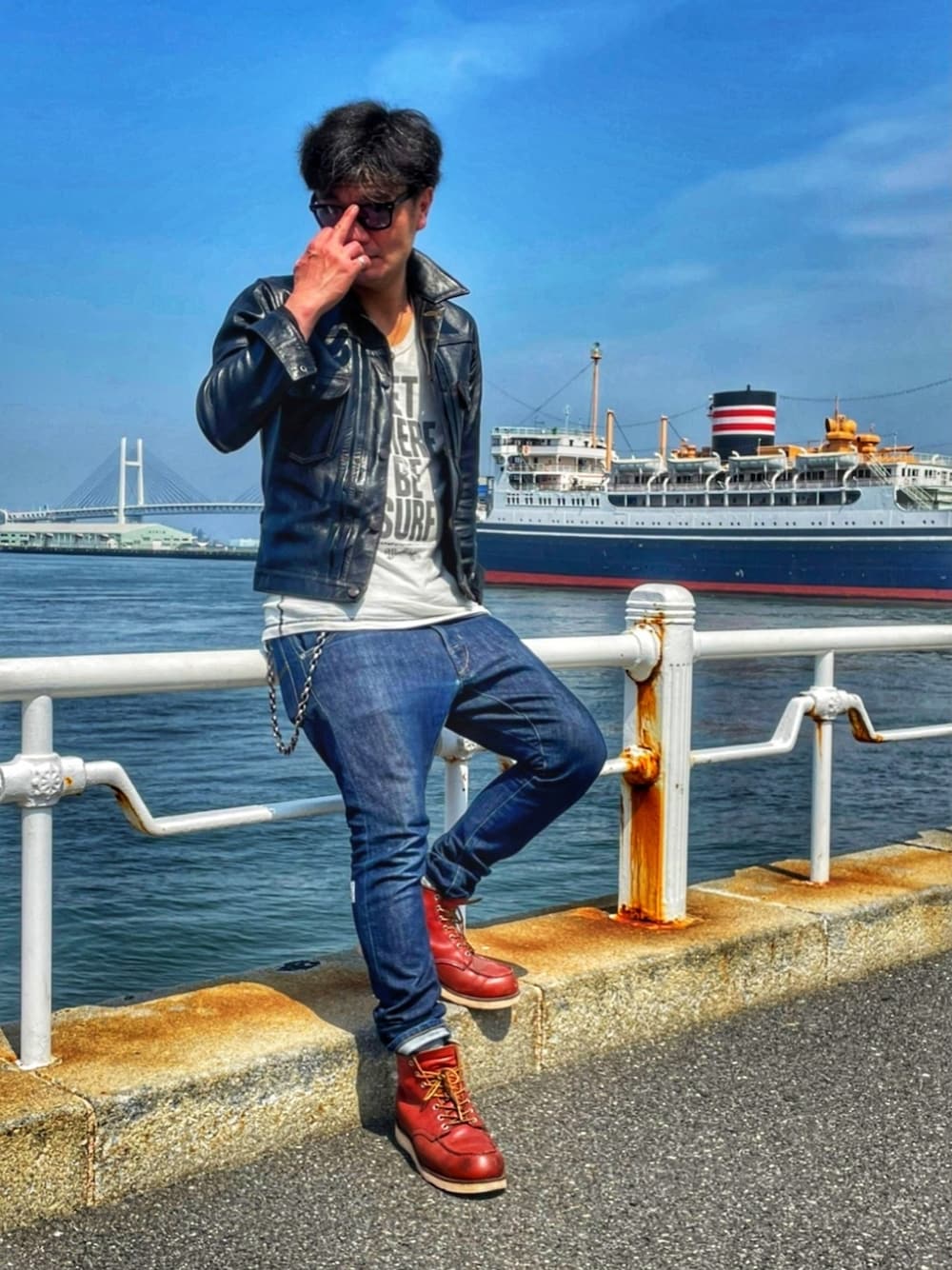ジャケット・・・HIGH LARGE LEATHERS インナー・・・MARBLES デニム・・・JIEDA ブーツ・・・RED WING