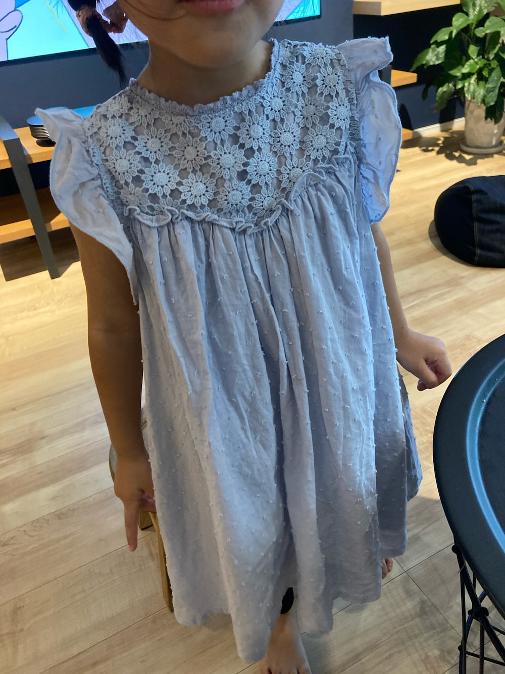 普段は、110買ってますが このワンピースは丈が長いので100にしました! それでも100センチの子で膝下あたりです☻