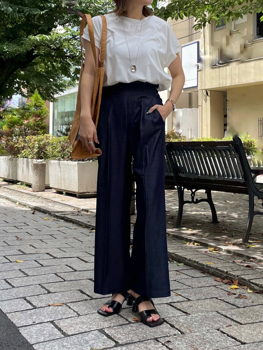 Misaoのその他パンツ「Wバックルヘリンボーンワイドパンツ」を使ったコーディネート