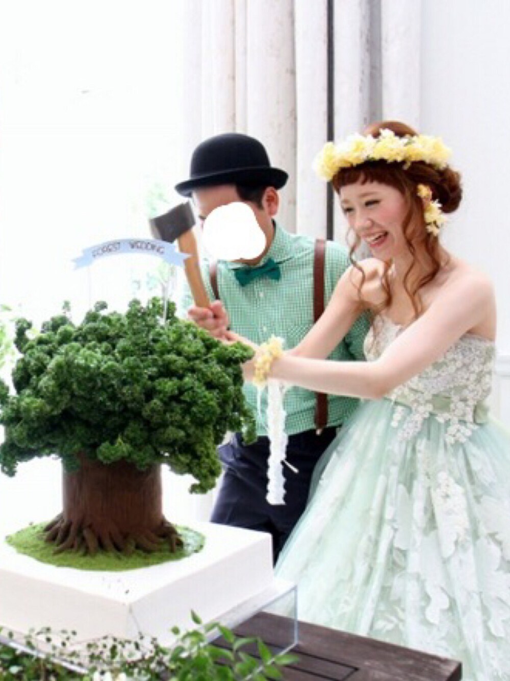 結婚1周年 カラードレスでケーキカット