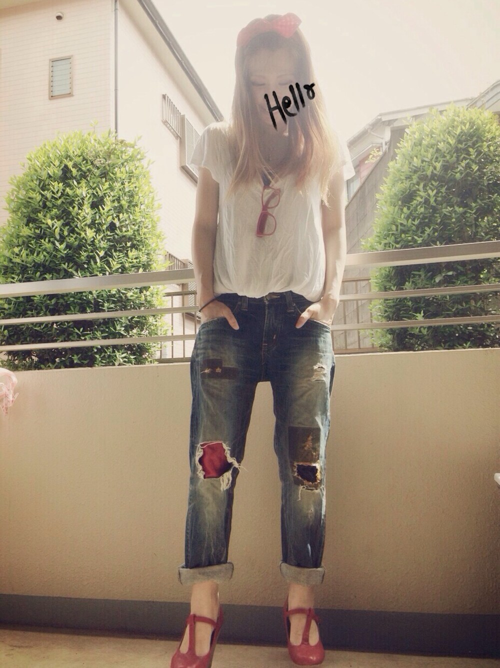 Tシャツ ブランド不明 2連チャン失礼します…|ω・`) 懐かしいデニムを見つけてしまいました (*・∀・) これまた10年くらい前に履いてたデニムです★ …履けた!!笑 シンプルコーデ(。・_・。)ゞ また赤になっちゃいました…笑