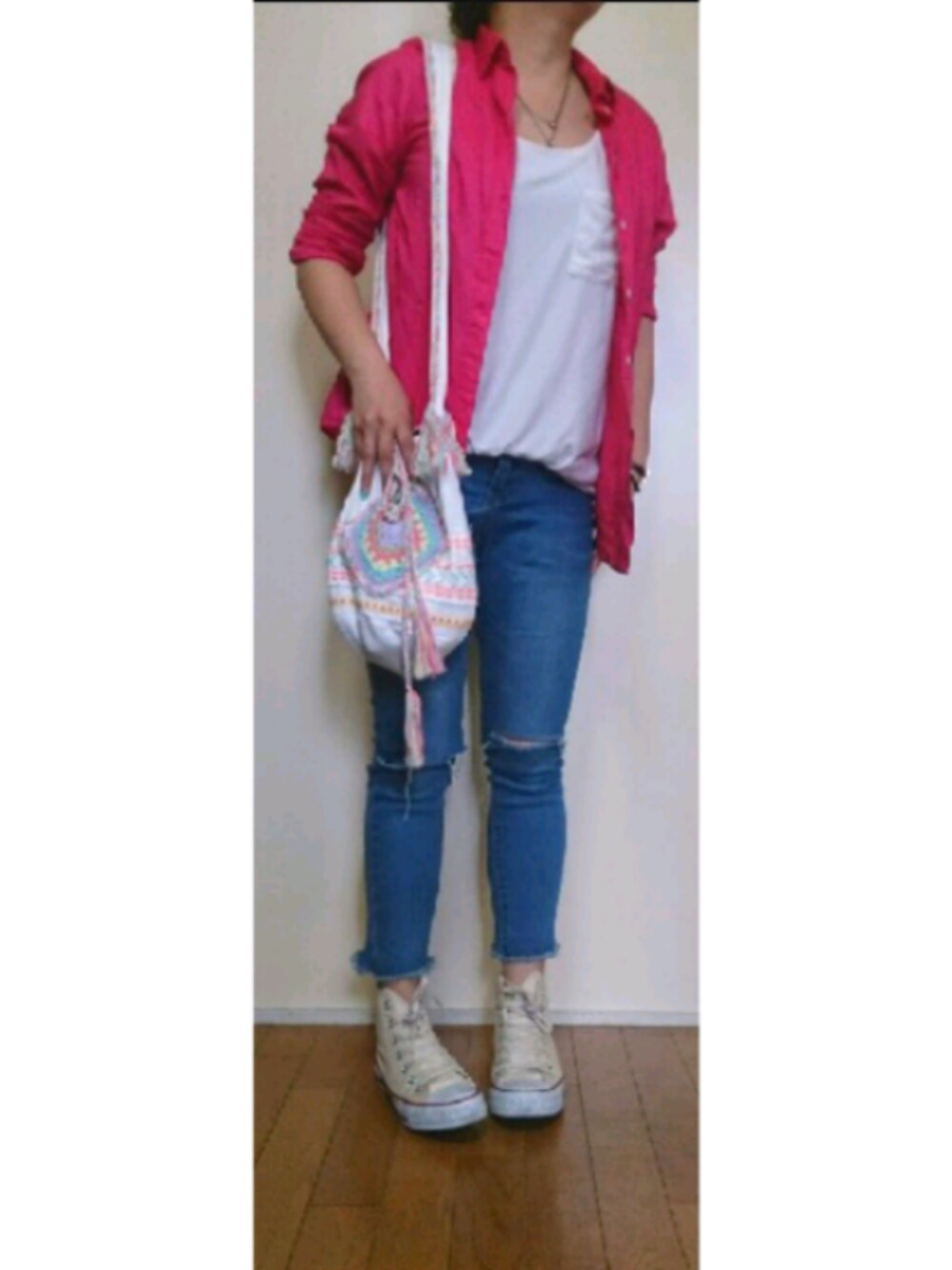 なんか途中で固まってしまっておかしくなったので再投稿です😱 今日の白Tは丈が長いので前にイン。 バッグは一目惚れしました😳 今日は出張で大阪行ってきます🏃