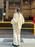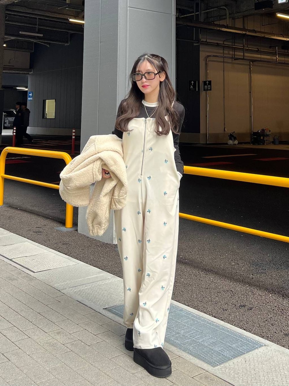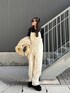 【サロペット】 可愛らしくなりすぎない大人サロペ! インナー次第で長い期間着用可能◎ ストンと落ちるワイドストレートシルエットで程よくゆとりのあるサイズ感! 肩紐調節できるので低身長さんでも安心! 【アウター】 リバーシブルで着れるブルゾン! 程よくゆとりもあり中も着込める◎ ムートンなので暖かく真冬でも◎