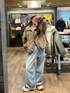 【アウター】 バルーンシルエットがかわいい春アウター! ヒップにかかる着丈で合わせやすい◎ 着回しやすいダブルジップと、襟立ててもかわいいです! 薄すぎず、ゆとりもあるのでインナーで気温調節できそう◎ 【パンツ】 シンプルだけど今年らしいワイドストレートデニム! ややハイウエストで脚長効果も◎ すとんと落ちるシルエットで、広がりすぎないので着回しやすいです◎ 153cm Sサイズ履いてます!