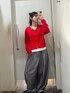 【トップス】 トップスとしても羽織としても楽しめる万能アイテム! コンパクトな丈感で、着回しやすい◎ きれいめにも、カジュアルにも◎ ニット特有のチクチク感も感じづらいです! 【パンツ】 きれいめにもカジュアルにも使えるコクーンパンツ! 深めのタックで低身長さんもバランスよく着れる◎ ワイドシルエットなので体型カバーにも◎ ウエスト絞れるのも嬉しいポイントです♡