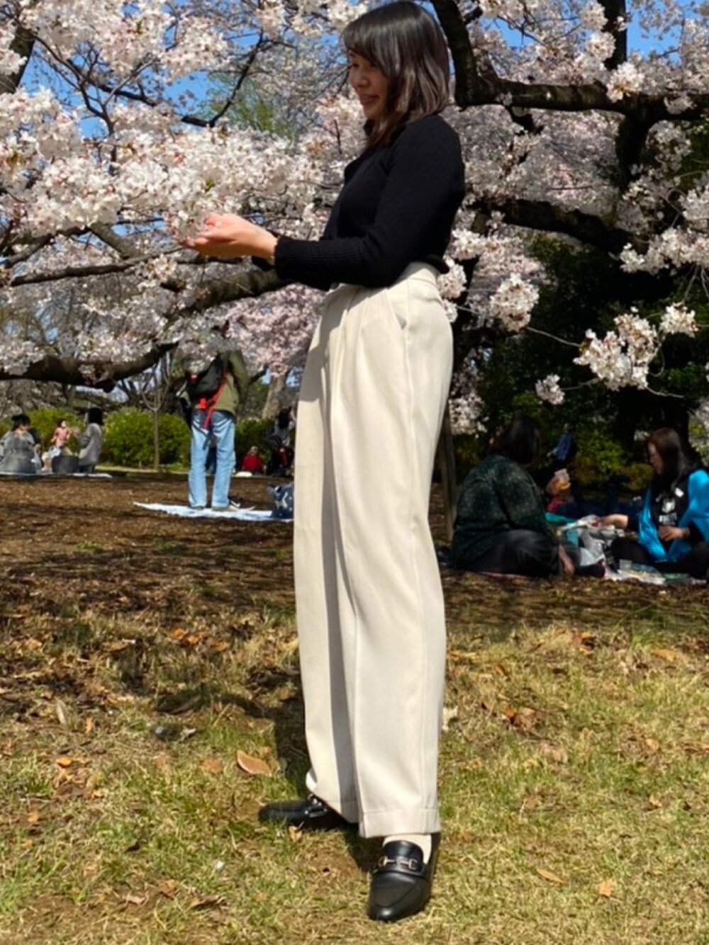 過去pic🌼 20度前後でまだ肌寒い時にニットとスラックスで脚長効果! ローファーで大人っぽくしてみました #プチプラコーデ