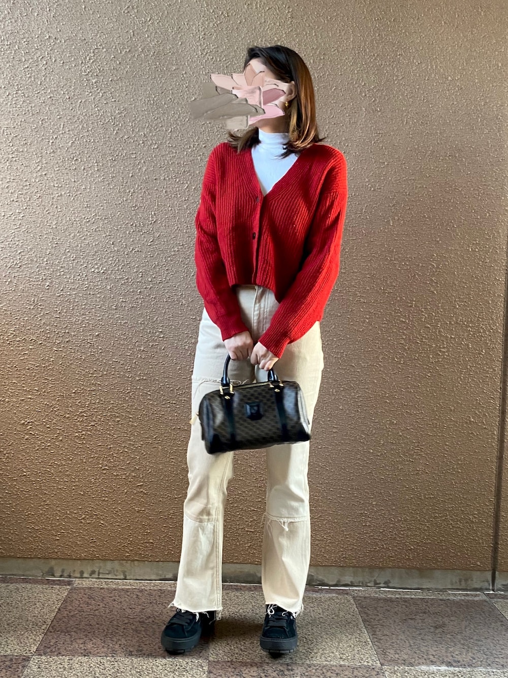 このフレアデニム年中使えそう!可愛い!! 赤×ホワイトの相性っていいよね!