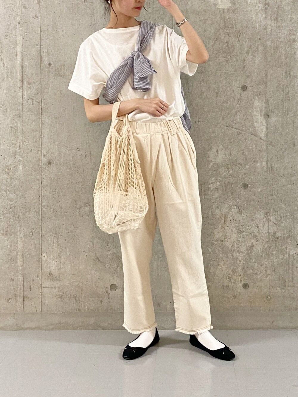 misaki(natural couture 心斎橋店)のTシャツ/カットソー「【WEB限定カラーあり】擬麻加工天竺バックプリントショートスリーブ」を使ったコーディネート