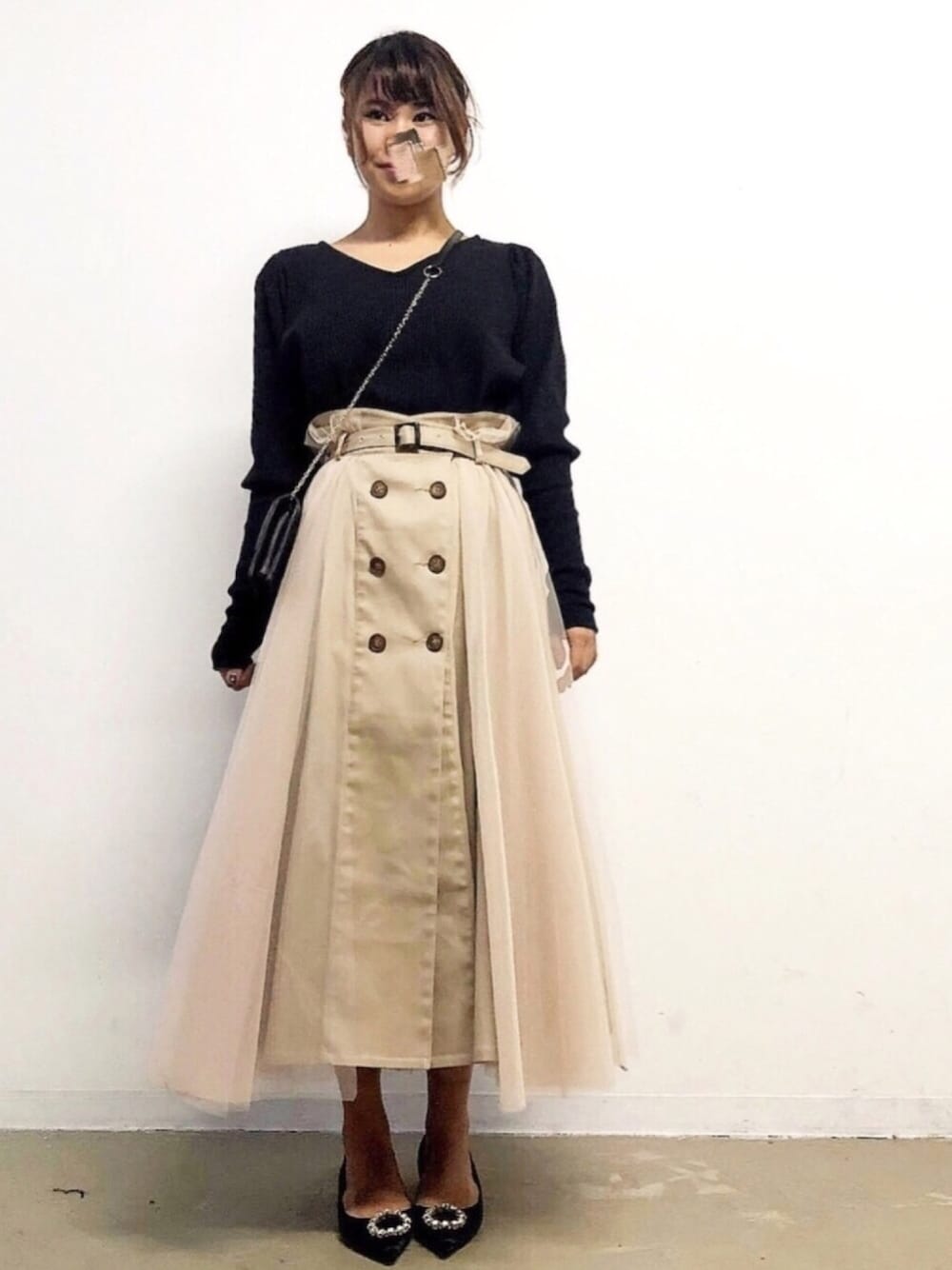 おみそのスカート「【LA BELLE ETUDE】サイドチュールトレンチスカート」を使ったコーディネート