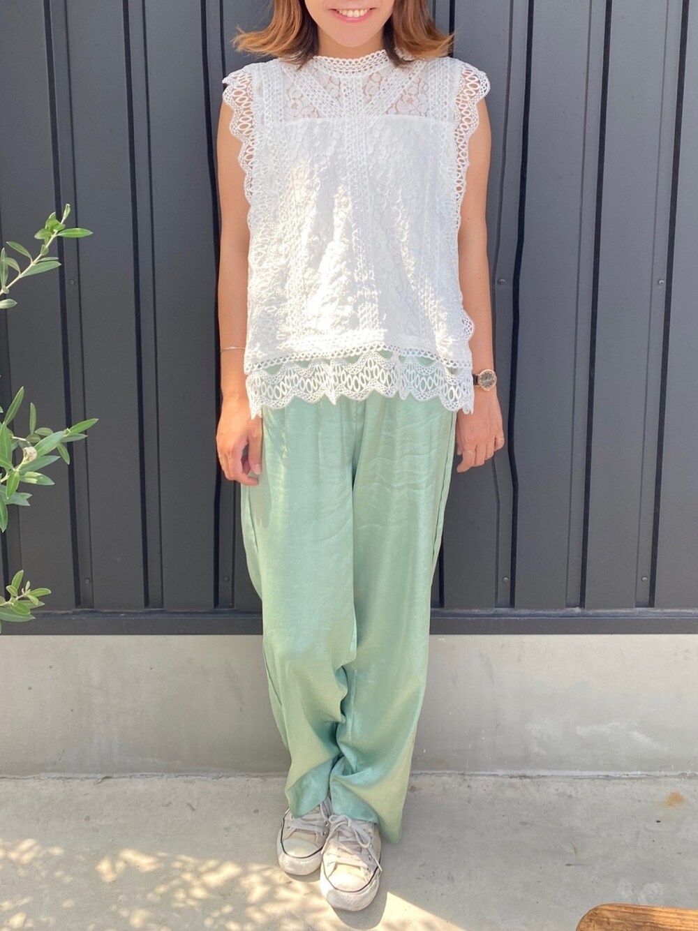 おみそのシャツ/ブラウス「総レースノースリブラウス」を使ったコーディネート