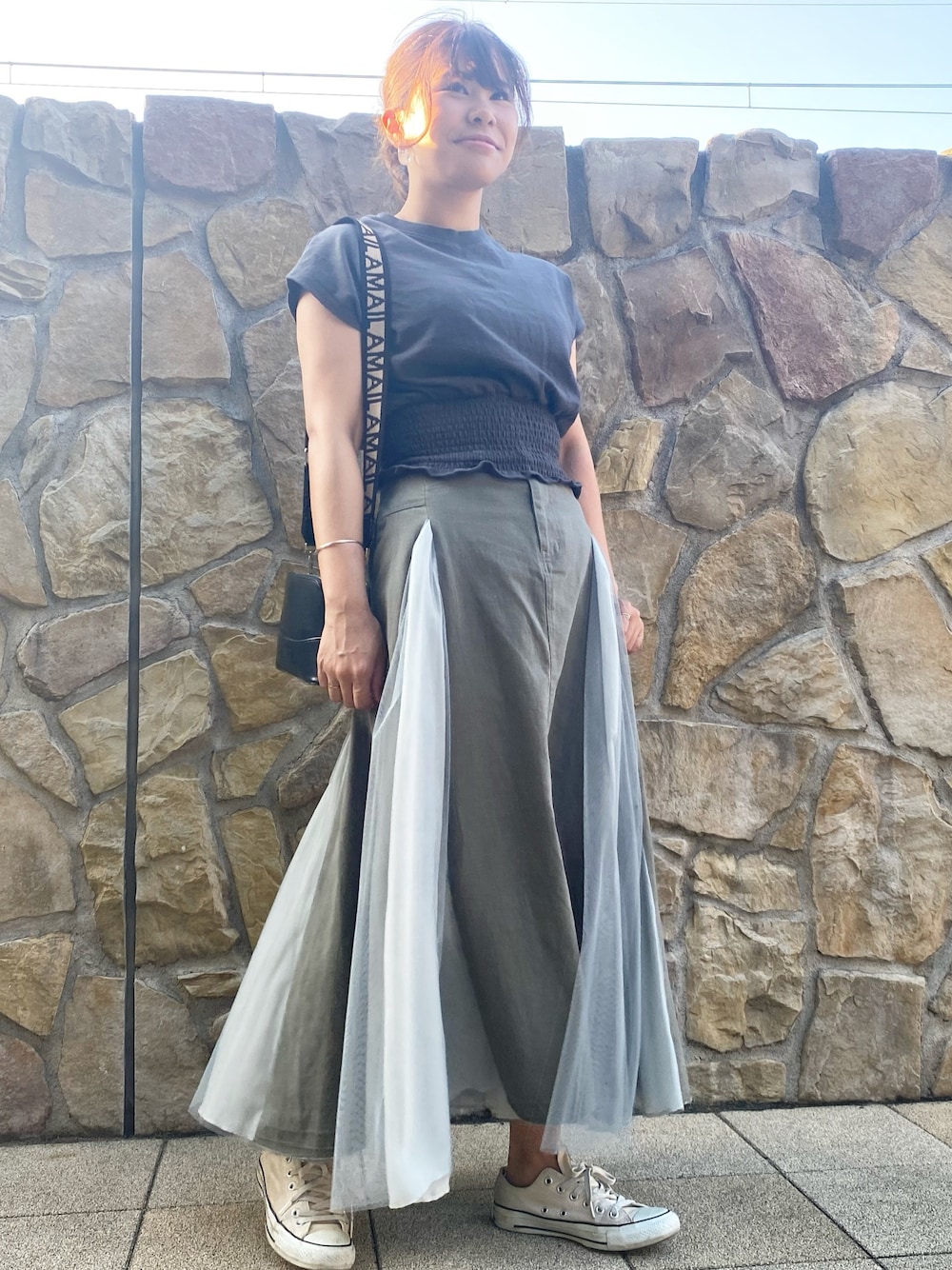 おみそのスカート「【LA BELLE ETUDE】【Belle vintage】シフォン切替ツイルAラインスカート」を使ったコーディネート