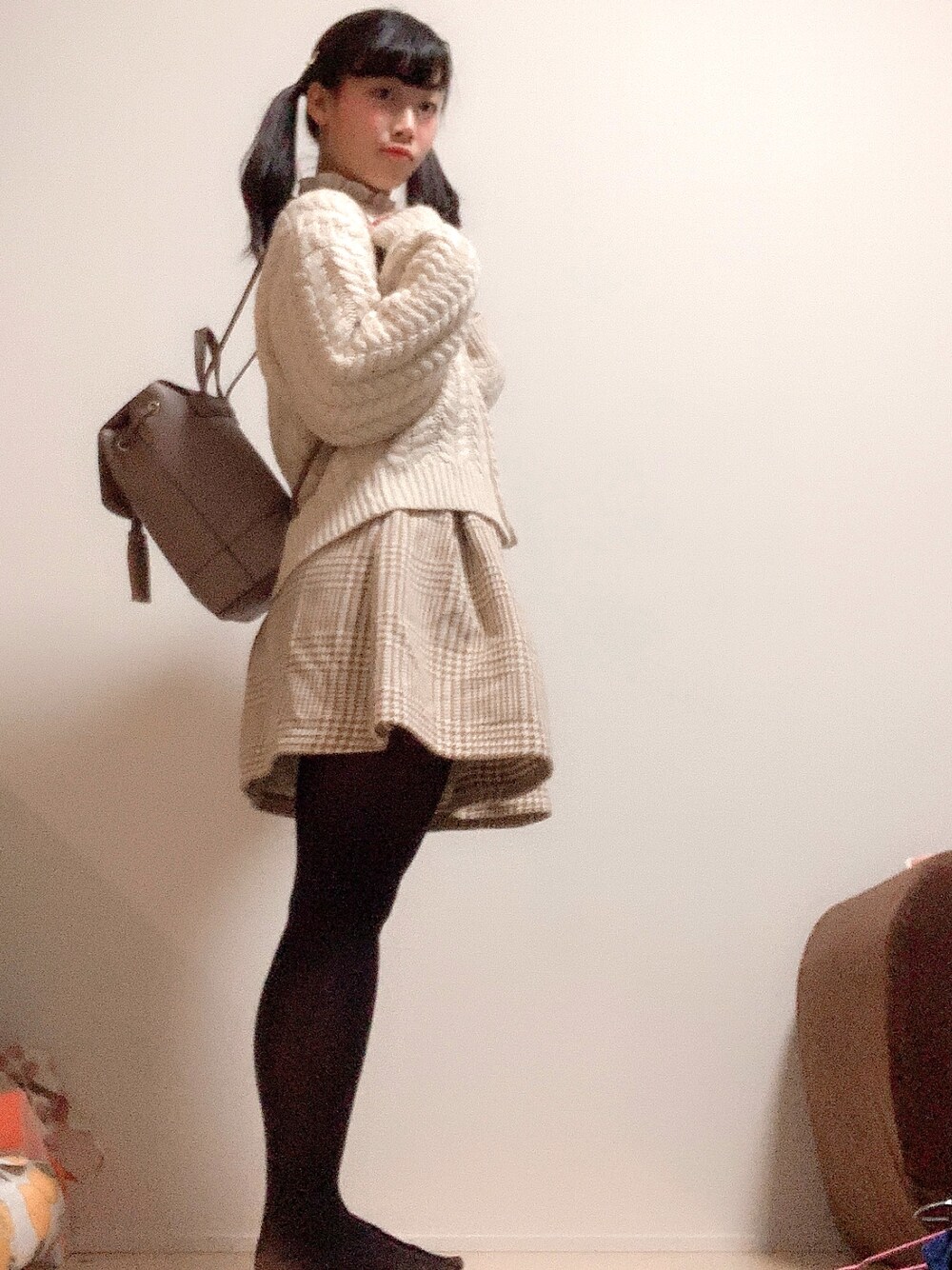 着用コーデ:7件mieのカーディガン/ボレロ「ハートケーブル編みカーディガン」を使ったコーディネート