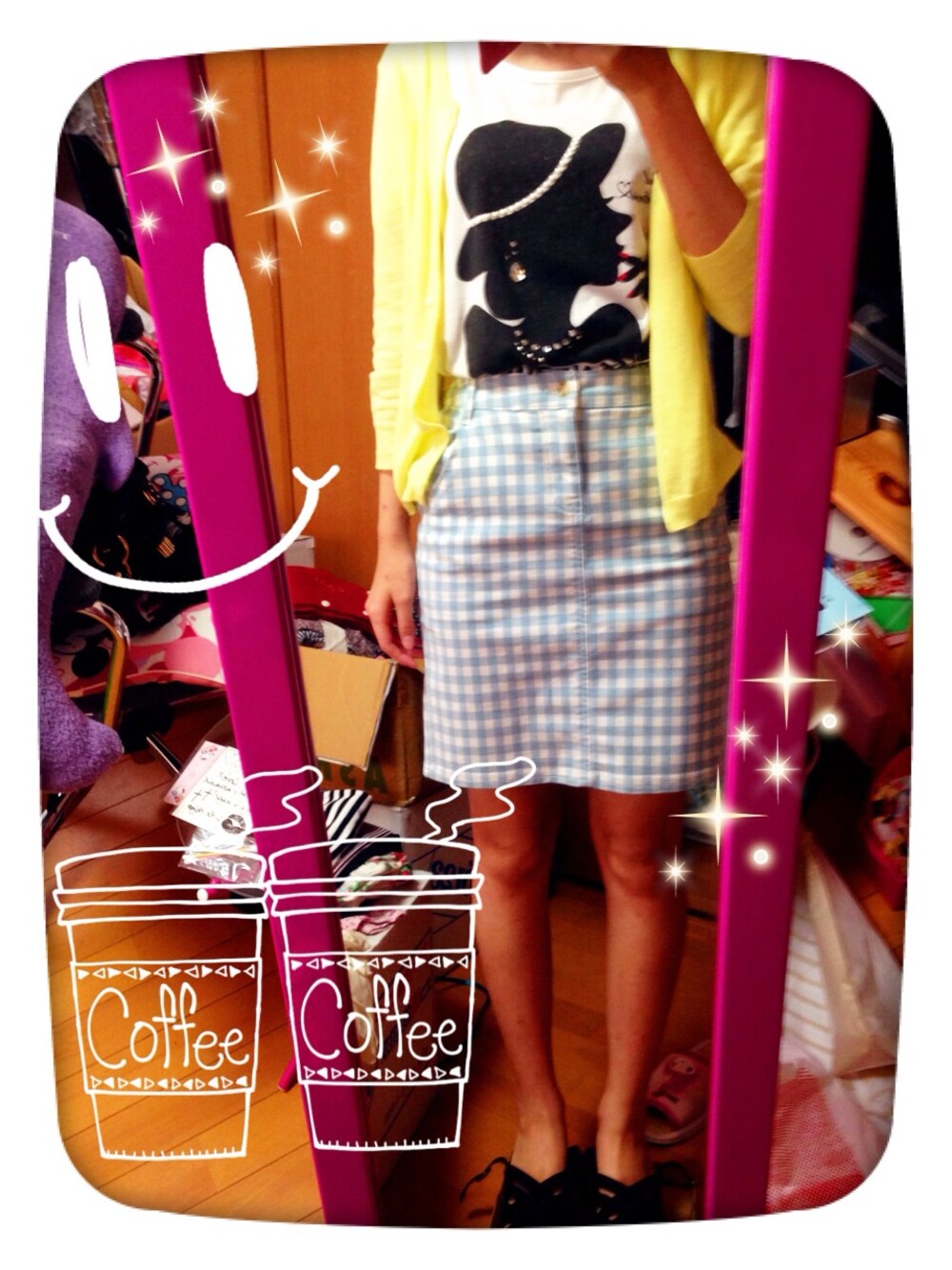 黄色カーデコーデ♡