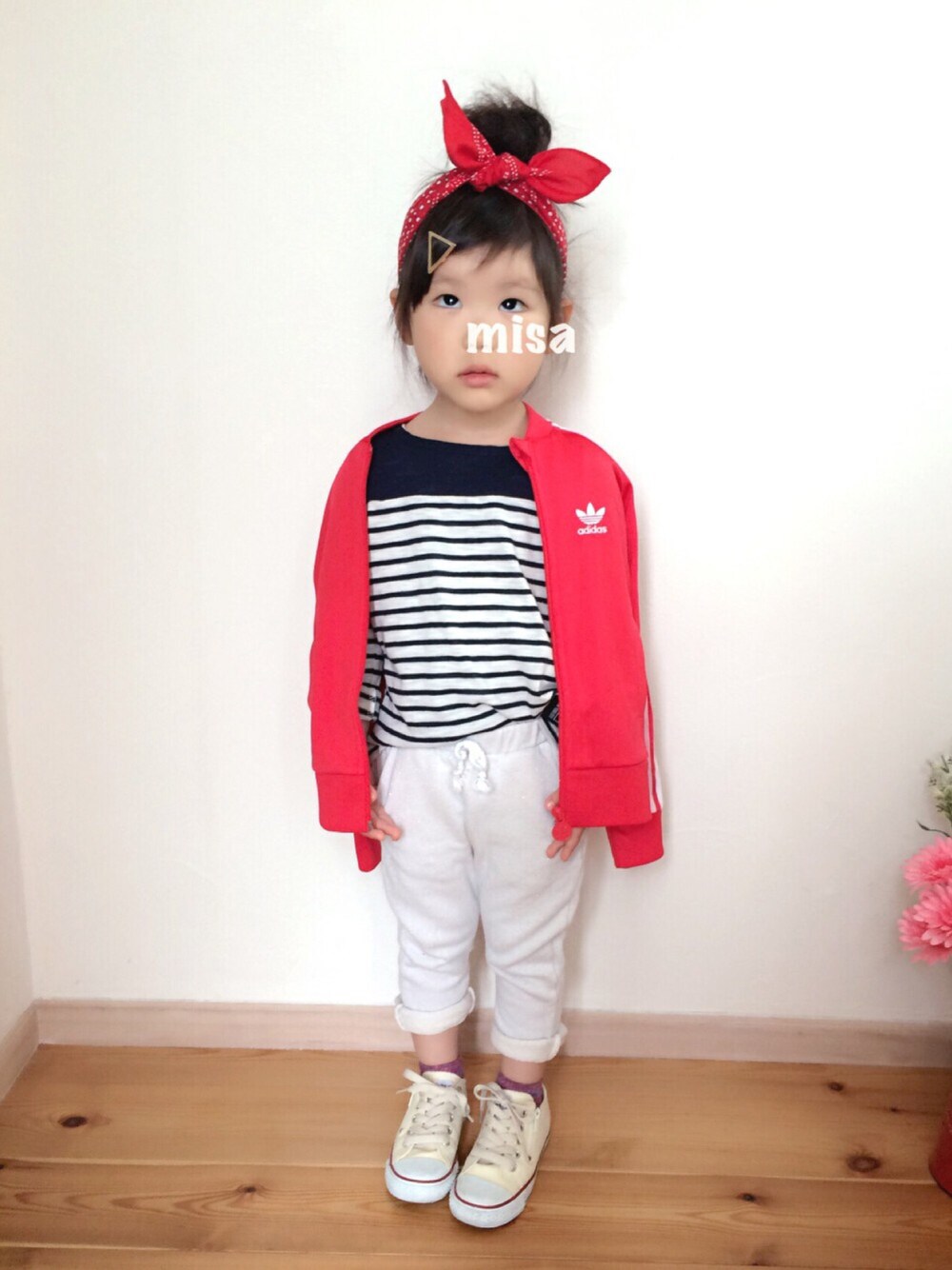 misaのジャージ「オリジナルス トラックトップジャージ[SST TRACK TOP]」を使ったコーディネート