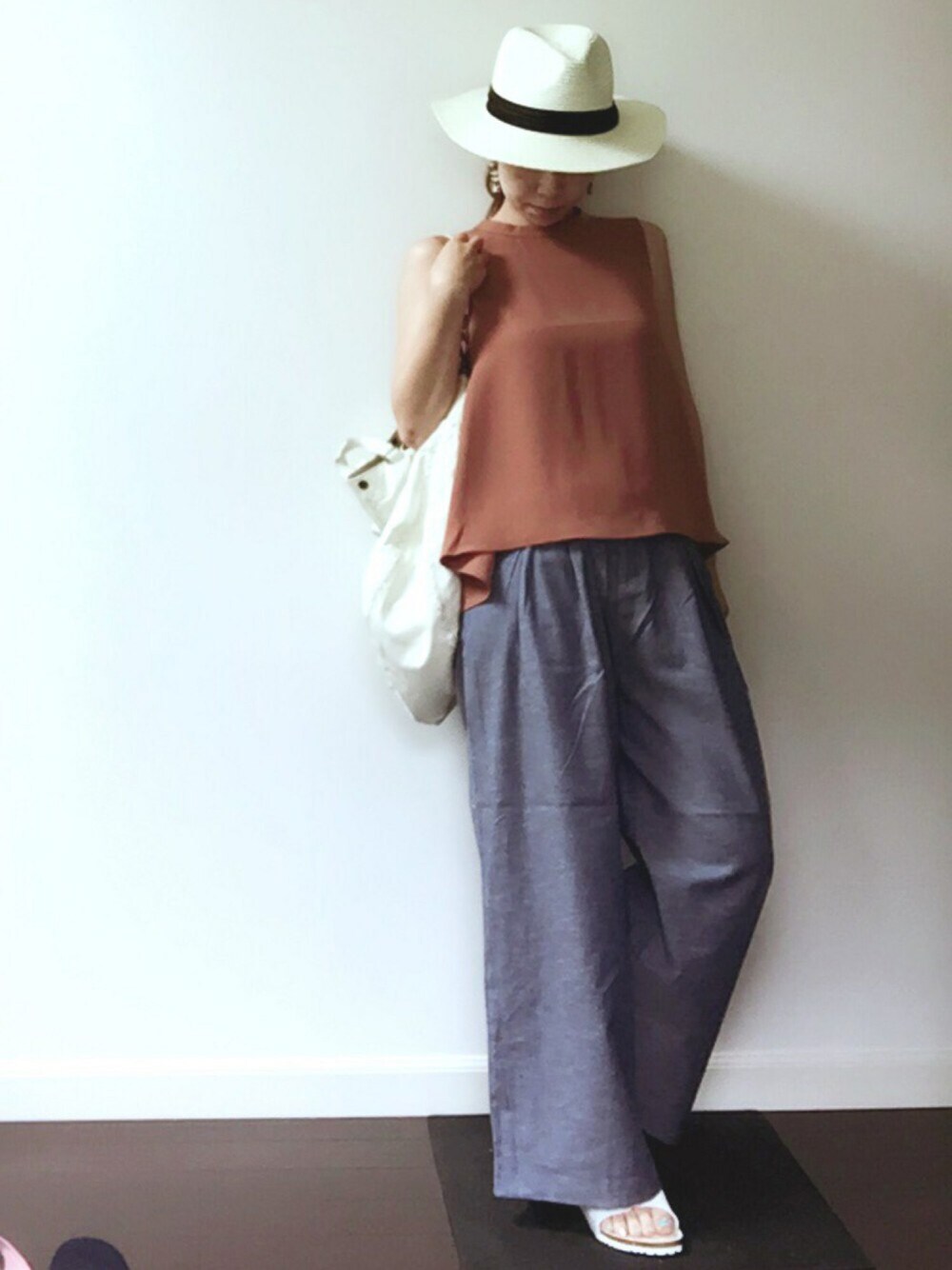 おやおや、今日は涼しめですか? ゆるパンツにサンダルで楽してます。