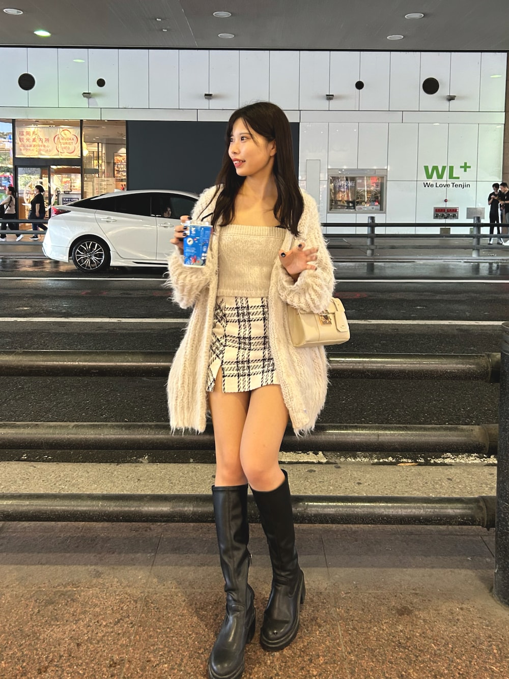 ●カーディガン 毛先の長めなシャギー素材がより今年らしいアイテムです♡ 柔らかい素材なので肌触りも良いです! ルーズなシルエットなので 前開きでも閉じても可愛いです! ふわふわな感じがこの秋可愛く使えそうです! ●スカート 太もものスリットで美脚効果もあるアイテムです! 程よい肌見せなので女性らしさを引き出してくれます♡ スカパンなので安心して履いていただけます! チェック柄がコーデのポイントになってくれます♡ ●ロングブーツ 23.5cmでMサイズ着用です。 チャンキーヒールで美脚に見せてくれつつ、 歩きやすいのがポイントのアイテムです! 軽いので一日中歩いてても疲れにくいです!