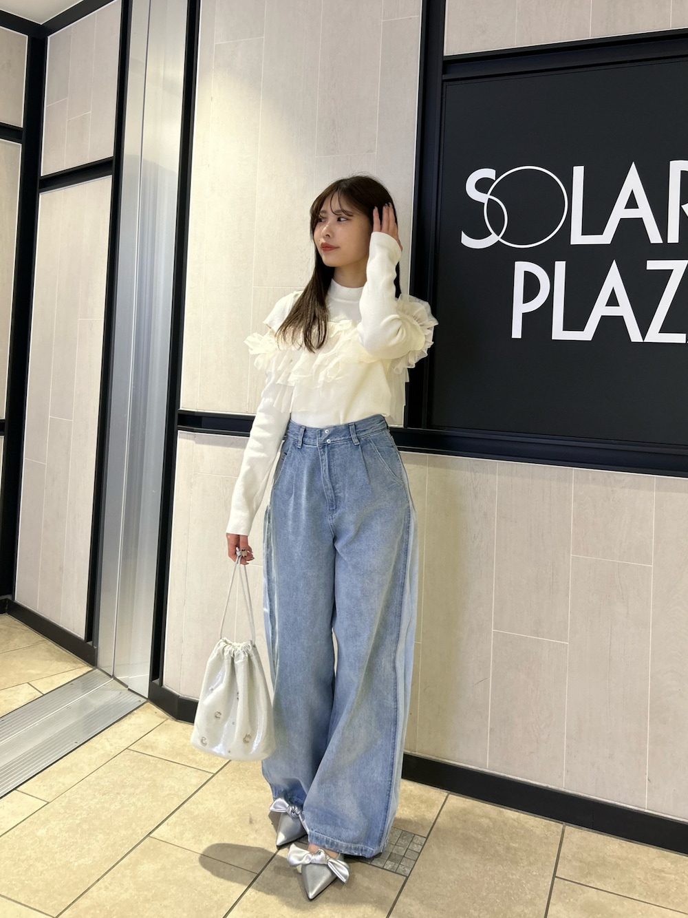 【スタッフレビュー】 ●トップス 肩部分のチュールを変えてお使いいただけます! 袖の部分のスリットが さり気ない肌見せなので女性らしく お使いいただけます♡ コンパクトなサイズ感なので スタイルもよく見えます! ●デニム 1サイズ着用です! サイドのラインがポイントのアイテムです! ウエストにフックが2つあるので サイズ感も調整していただきやすいです。 スポーティライクな印象が 今年らしくお使いいただけます♡ ●ミュール 23.5cmでSサイズ着用です! リボンは取り外しができます! 安定感のあるので 一日中歩いても疲れにくいアイテムです♡ 柔らかい素材なので靴擦れもしにくいです!
