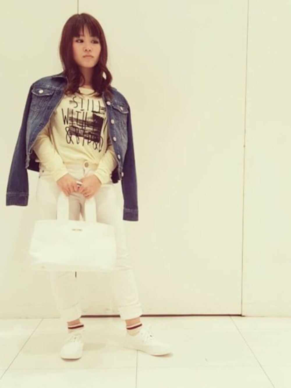 新作春コーデ♡ パンツ、バッグ、シューズは白で統一してみました!