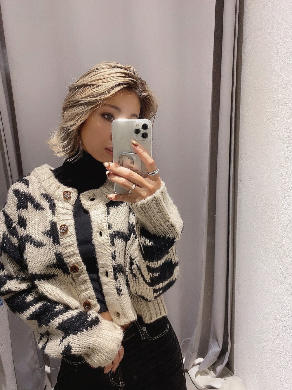 Misa(GYDA)のカーディガン/ボレロ「houndstooth patternショートニットカーディガン」を使ったコーディネート