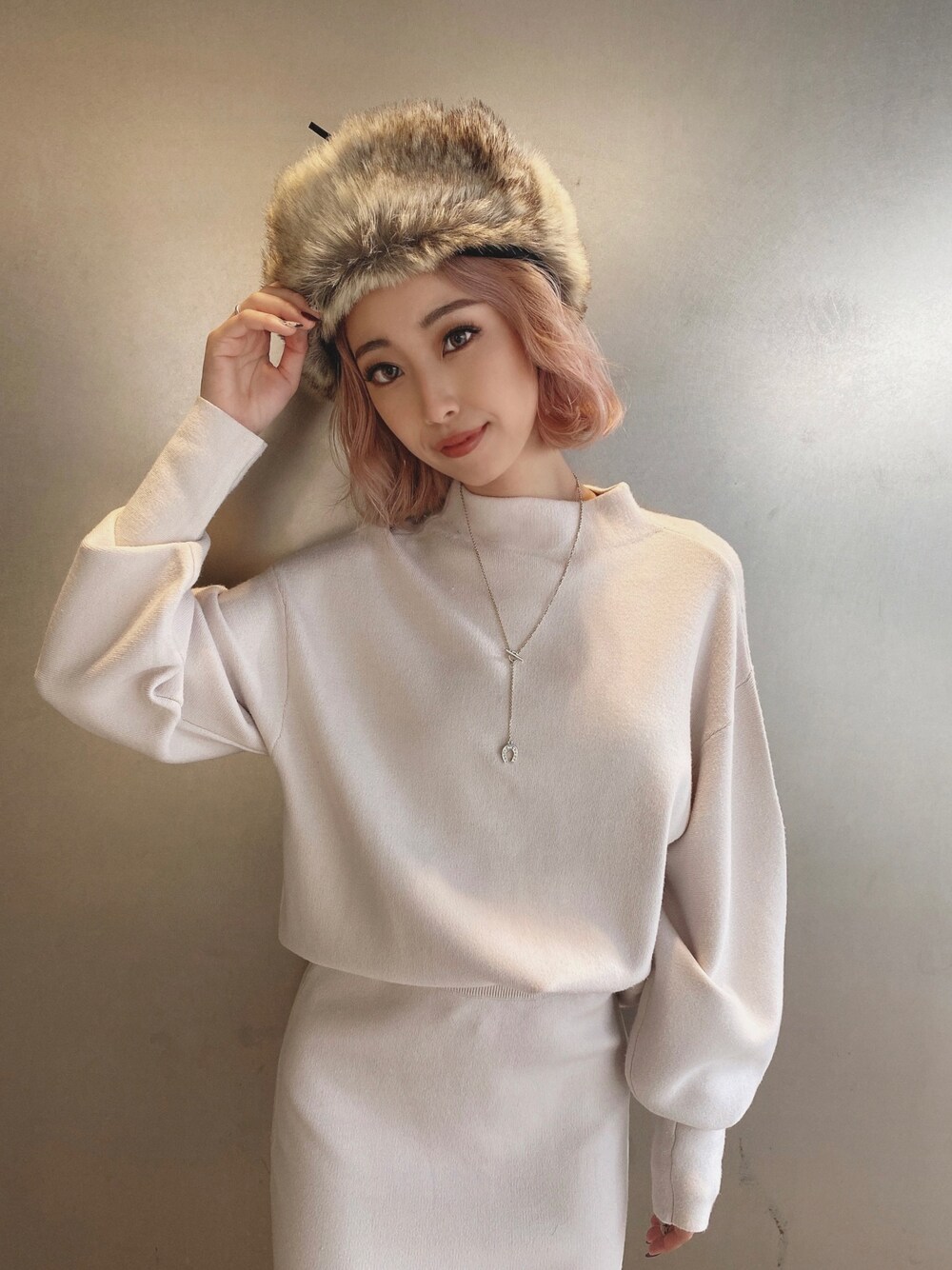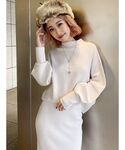 ホワイト系のニット/セーターを着用したレディースの冬コーディネートの1枚目の写真