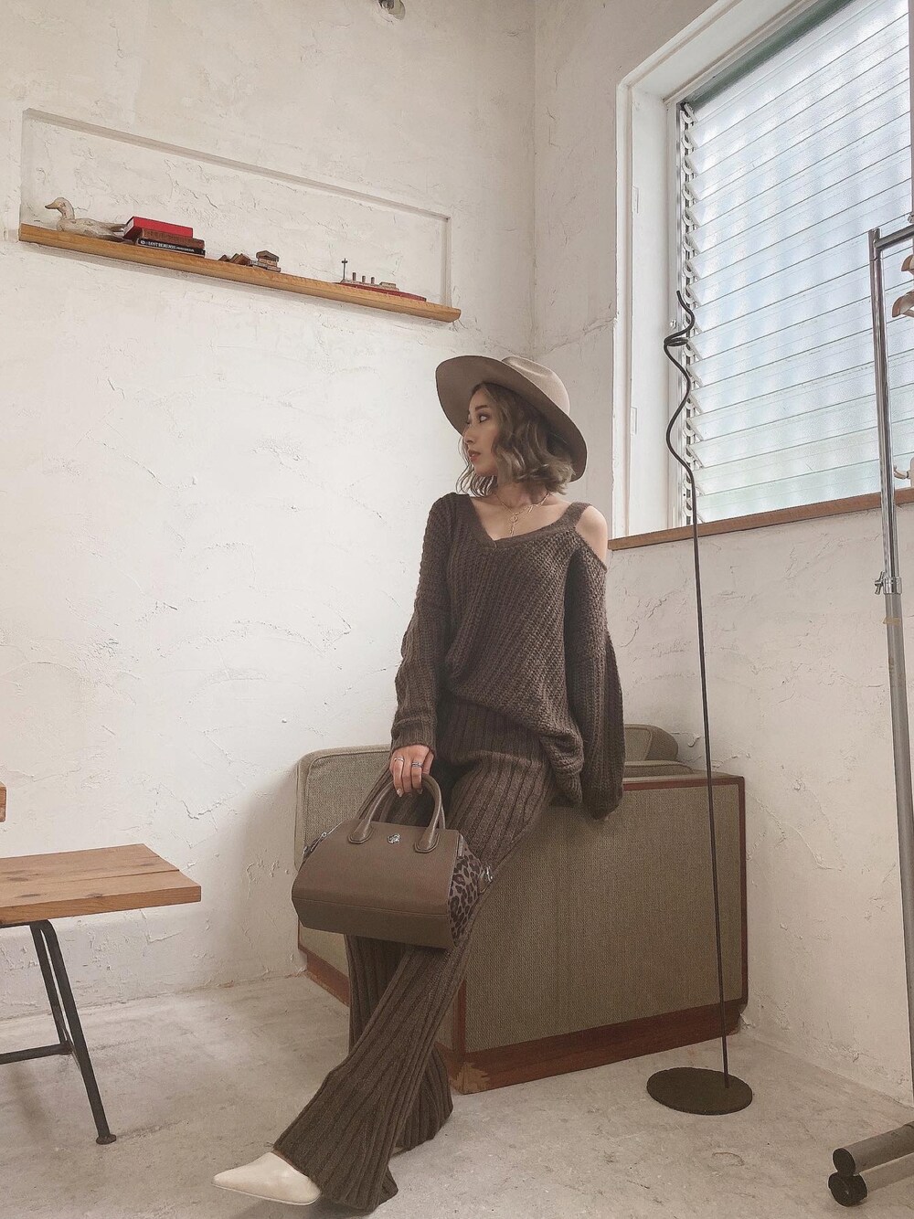 Misa(GYDA)のニット/セーター「【SETUP着用可】ワンショルメランジヤーンLOOSEニットTOPS」を使ったコーディネート