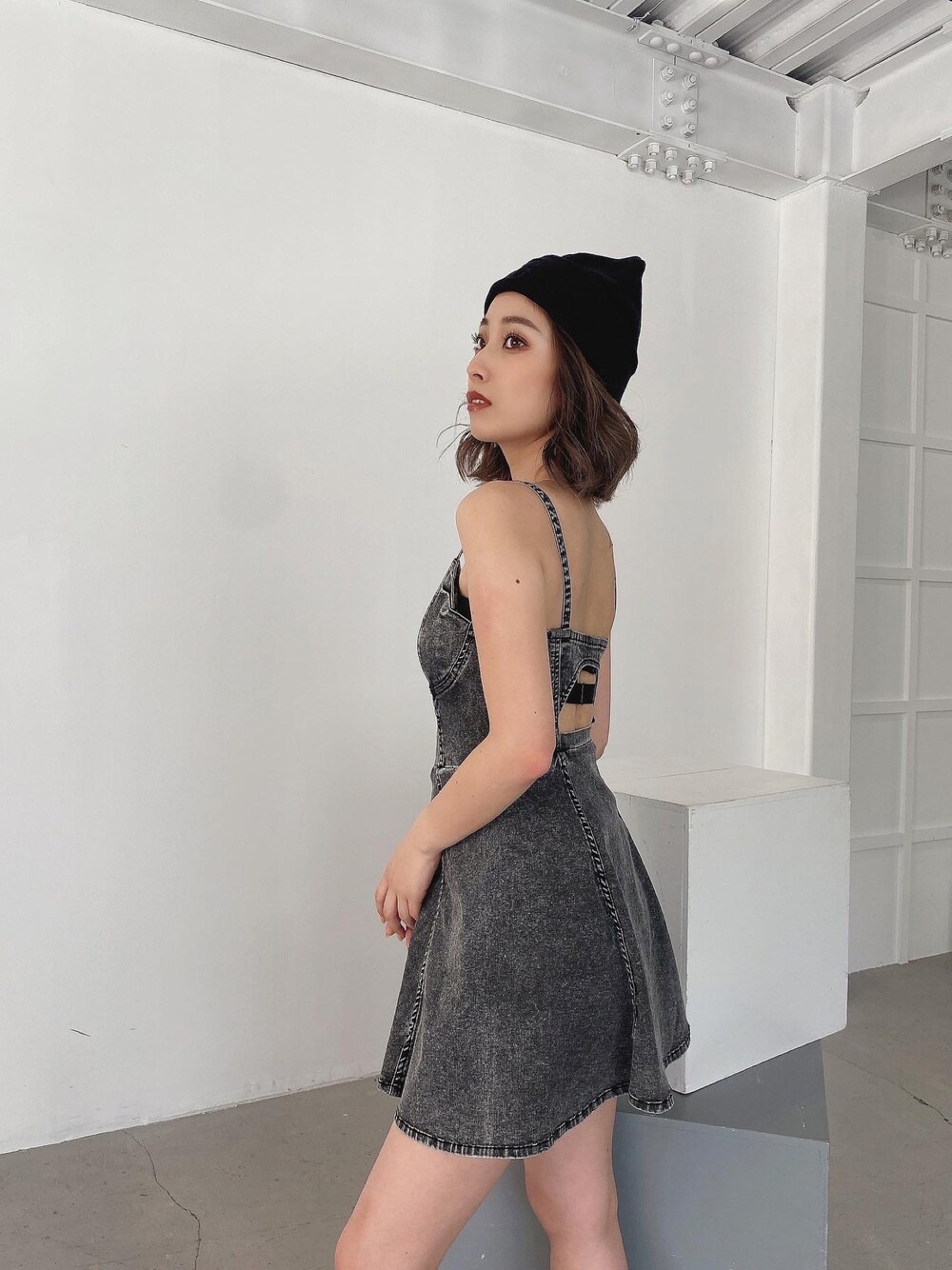 Misa(GYDA)のワンピース「キャミフレア スカートライクケミカルデニムワンピース」を使ったコーディネート