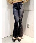 Misa(GYDA)のデニムパンツ「ハイウエスト BACKRIPPED SHAPELY LINEフレアデニムパンツ」を使ったコーディネート