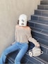 店頭でも大人気のグラインダーオフショルニット♡ デコルテがとっても綺麗に見えるデザインです! 丈が短めなので、ハイウエストのボトムと合わせて脚長効果抜群コーデです! カジュアルにまとめてキャップ合わせもおすすめですが、ハットやキャスケットなどでレディーライクに合わせても可愛いです♡