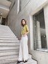 毎年人気のプレイボーイのTシャツは今年は海のモチーフで夏らしいカジュアルデザインに✨ 会えてさらっとしたタック付きの綺麗めパンツで海にあわせてリゾート感を意識しました♡ こちらのパンツはハイウエストシルエットのバックスタイルはシャーリング仕様になっており締め付け感なしのストレスフリーで着用できます! 深みのあるマスタードはこの季節重たくならないようにホワイトのボトムで爽やかに✨ アイスブルーのデニム合わせもおすすめのコーディネートです♡