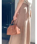 レザー素材でカラーも同じキャメルで合わせてコーディネートすると統一感が増し、ぐっとお洒落度がアップします♡ 主張しすぎないようにアイボリーの落ち着いたカラーのセットアップに合わせて肌馴染みも良くするのがポイント♡ 其々ブラックと2色展開ですがブラックはよりカジュアルな印象で合わせやすいのでモノトーンが好きな方や、色物のお洋服が多い方はブラックもおすすめです☺️