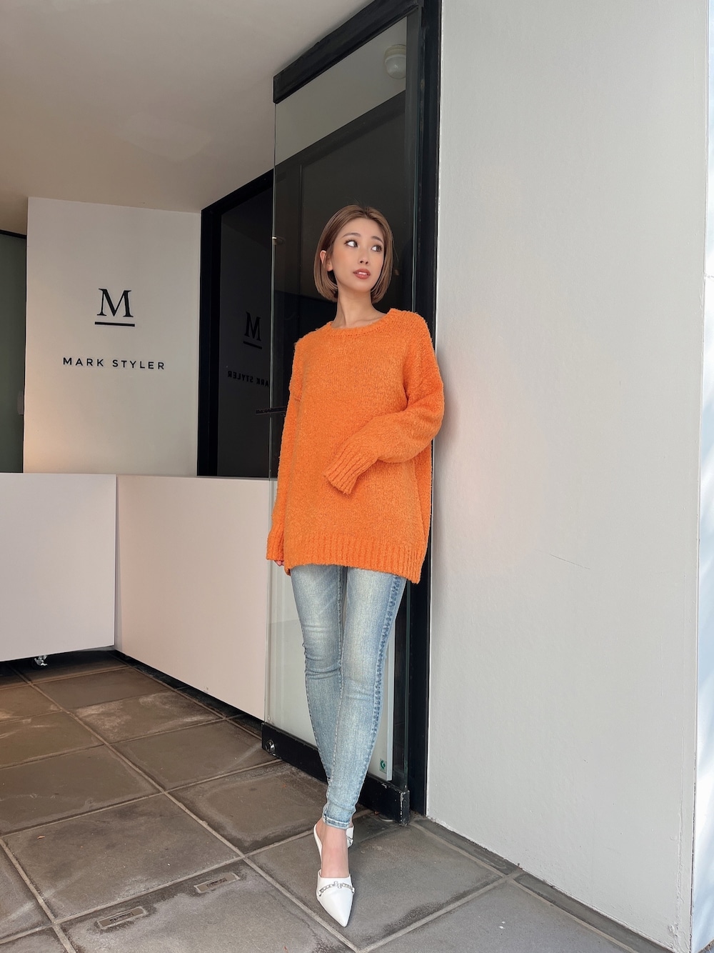 ニットトップスは店舗限定アイテムの BIGフォルムブークレニットトップス です。