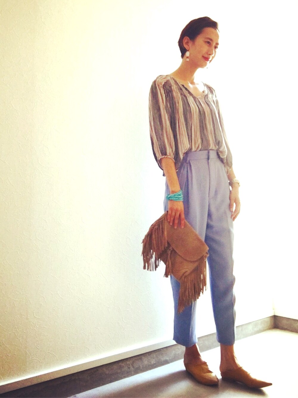 MISAのシャツ/ブラウス「モチーフストライプトップス」を使ったコーディネート