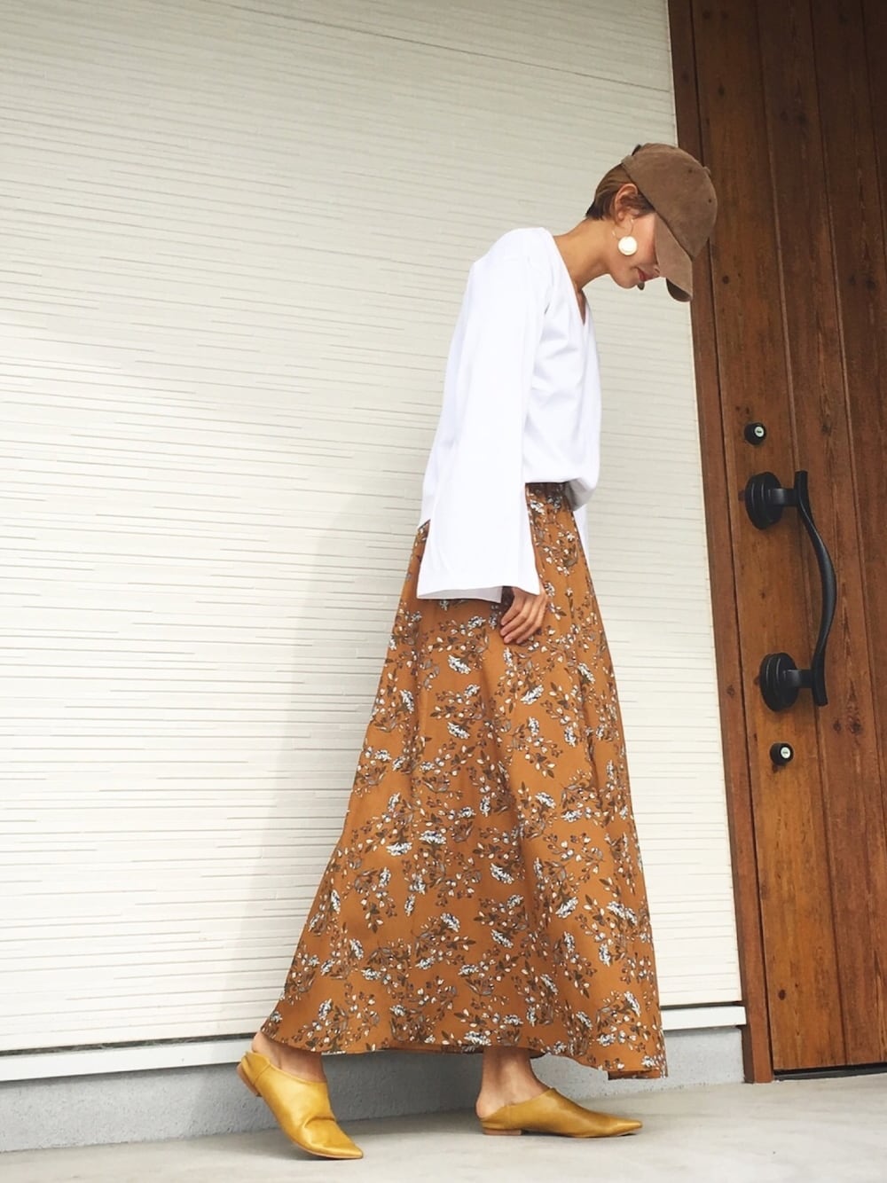 ✴︎camel🍂✴︎ 脱力感…🗣 ・ 普段は断然パンツスタイルが多い私ですが、スカートも履いて女子力上げないとな、と。💃✨